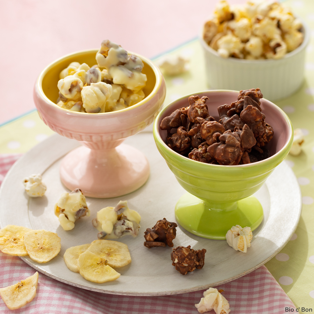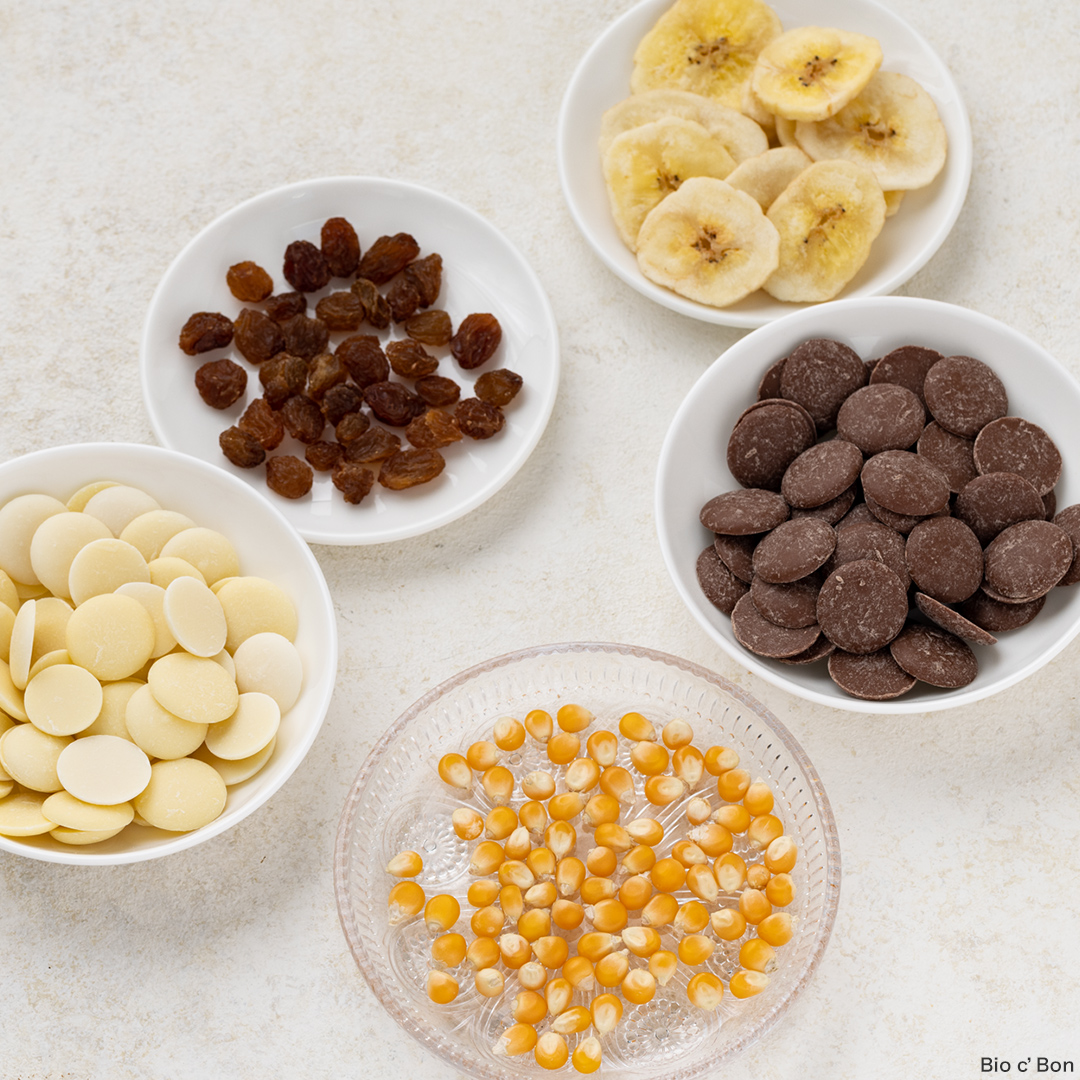 ビオセボンのバルク(量り売り)コーナーで実はファンが多いのがポップコーン。少量のオイルと一緒に火にかけるだけで、ポンポン弾ける音にワクワクします。作り方は意外と簡単♫チョコを絡めて一つずつまとめる作業も楽しいので、ぜひお子さまと一緒にお試しくださいね!