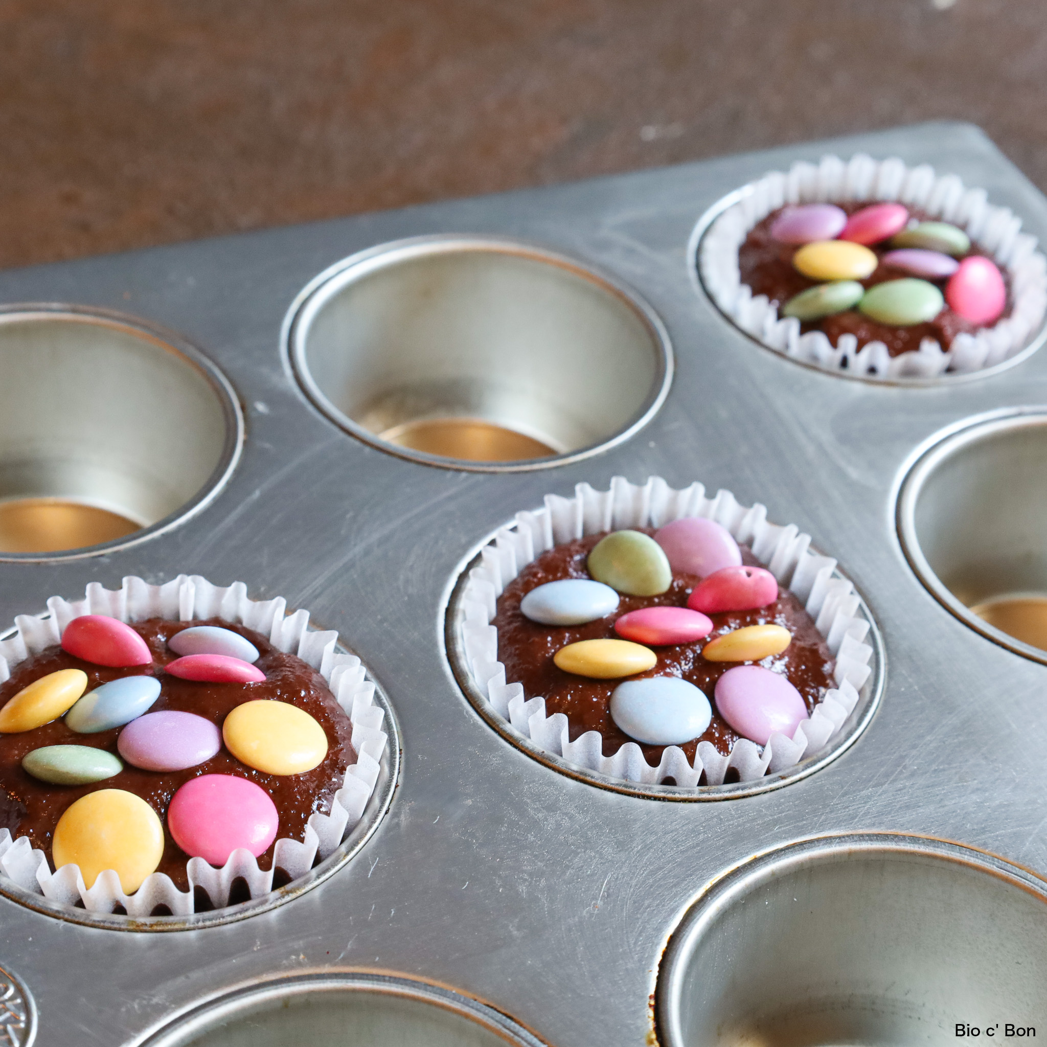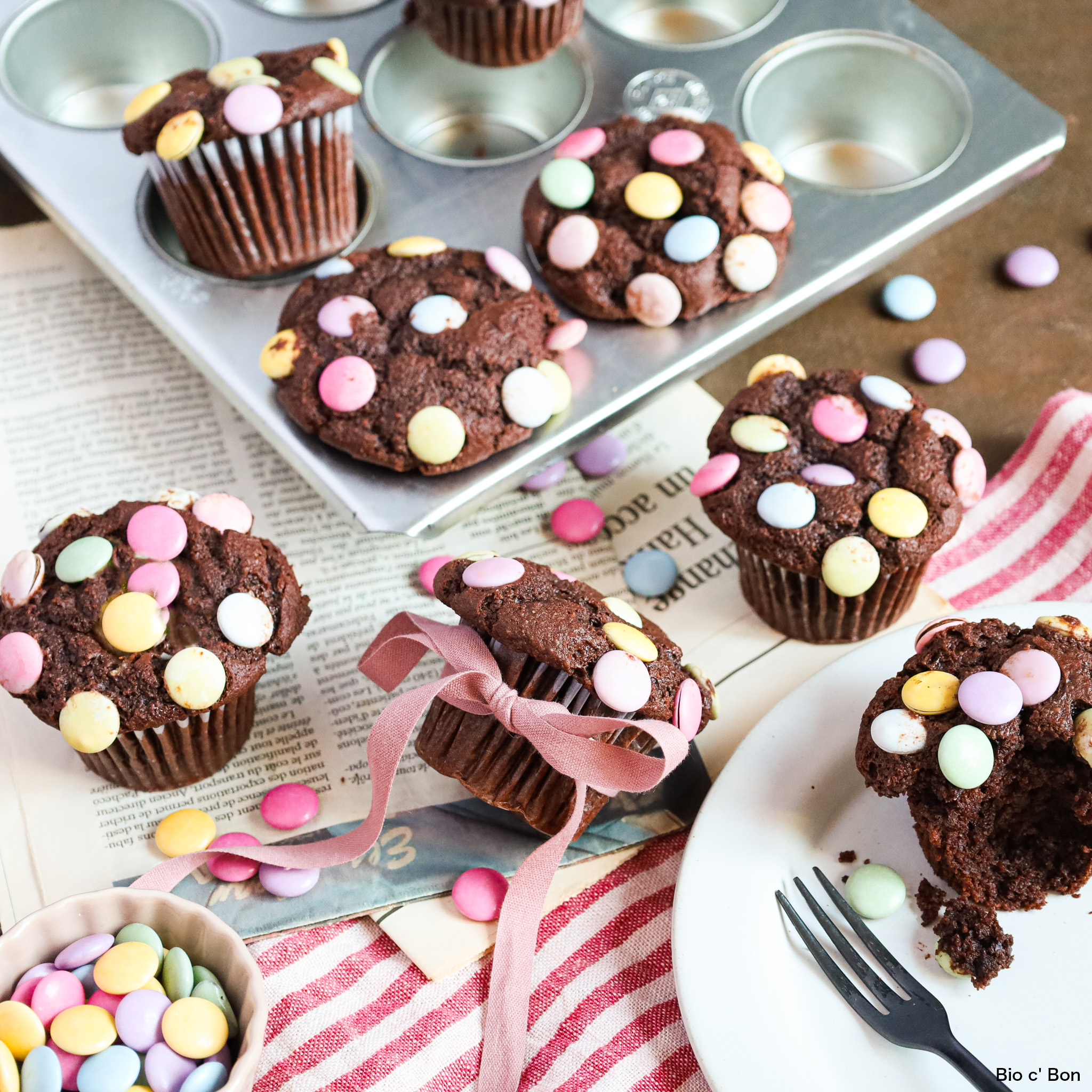 ポップで可愛いカラフルチョコで!米粉のチョコマフィン