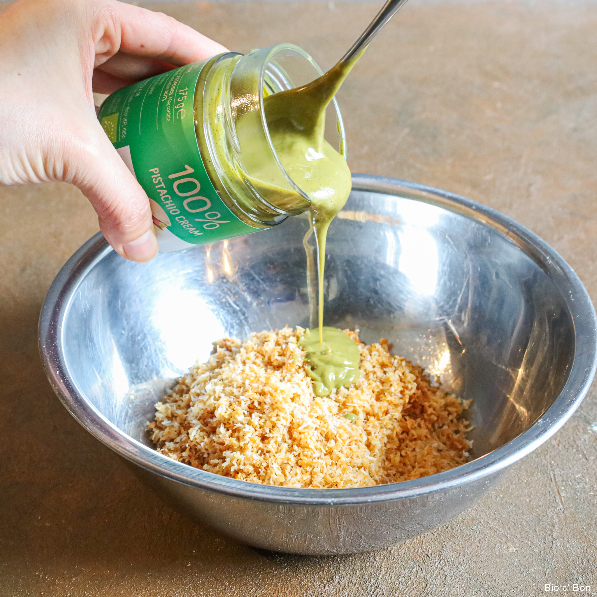 ドバイ発祥!今世界中で大人気のドバイチョコレート。本場では「カダイフ」というトウモロコシ粉の乾麺を使用していますが、ビオセボン的アレンジではココナッツフレークと #チェントペルチェント ピスタチオクリームを使い、手軽に美味しく作れるレシピに仕上げました。