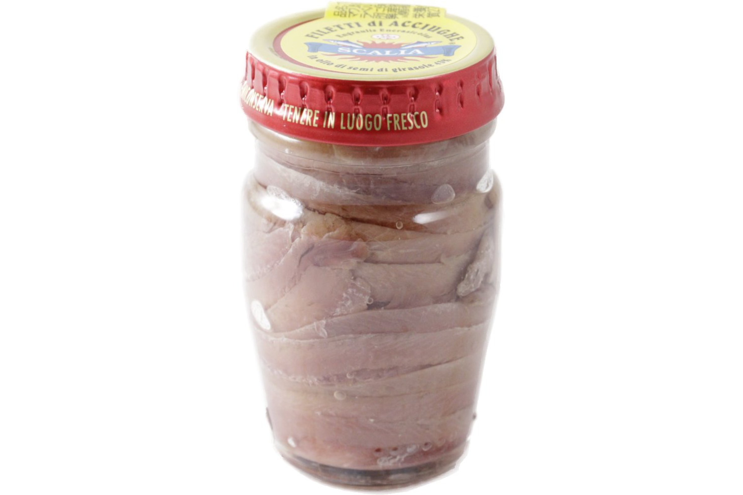 スカーリアさんのアンチョビ 瓶 80g - 新鮮なカタクチイワシを定温で6ヶ月以上塩熟成。星付きレストランでも支持される品質で、星付きレストランにも選ばれる品質で、料理に深みとコクをプラスします。