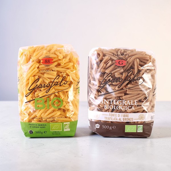 オーガニック 全粒粉カサレッチェ 500g- 全粒粉ならではの香ばしさとコクが楽しめ、シンプルなソースでも素材の美味しさをしっかり引き立てます。