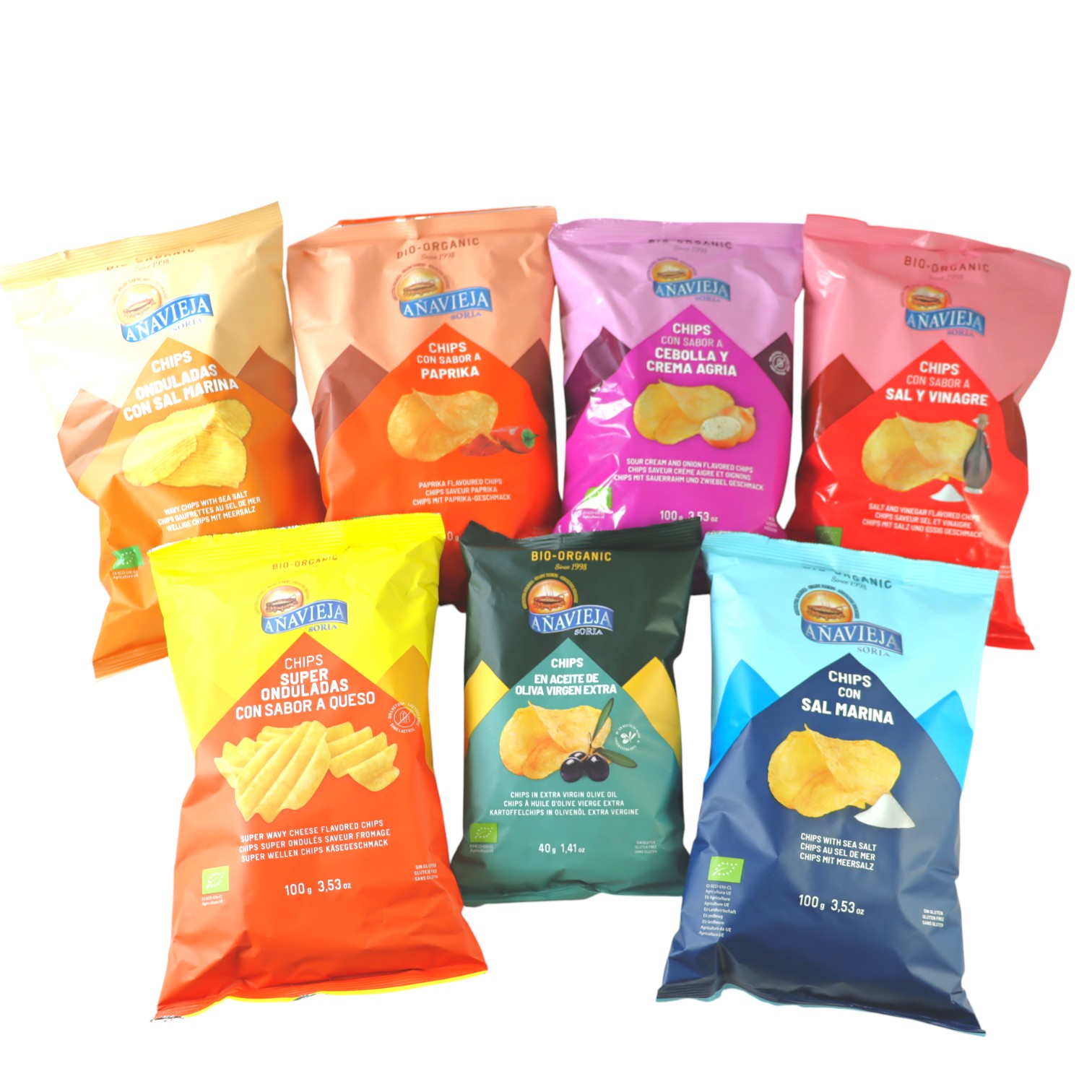 スペイン発のオーガニックチップス「アナヴィエハ」を、7種類詰め合わせたお得なセットです。お子さまから大人まで、幅広い世代におやつやおつまみとしてお楽しみいただけます。食べくらべて、お気に入りのフレーバーを見つけてください。