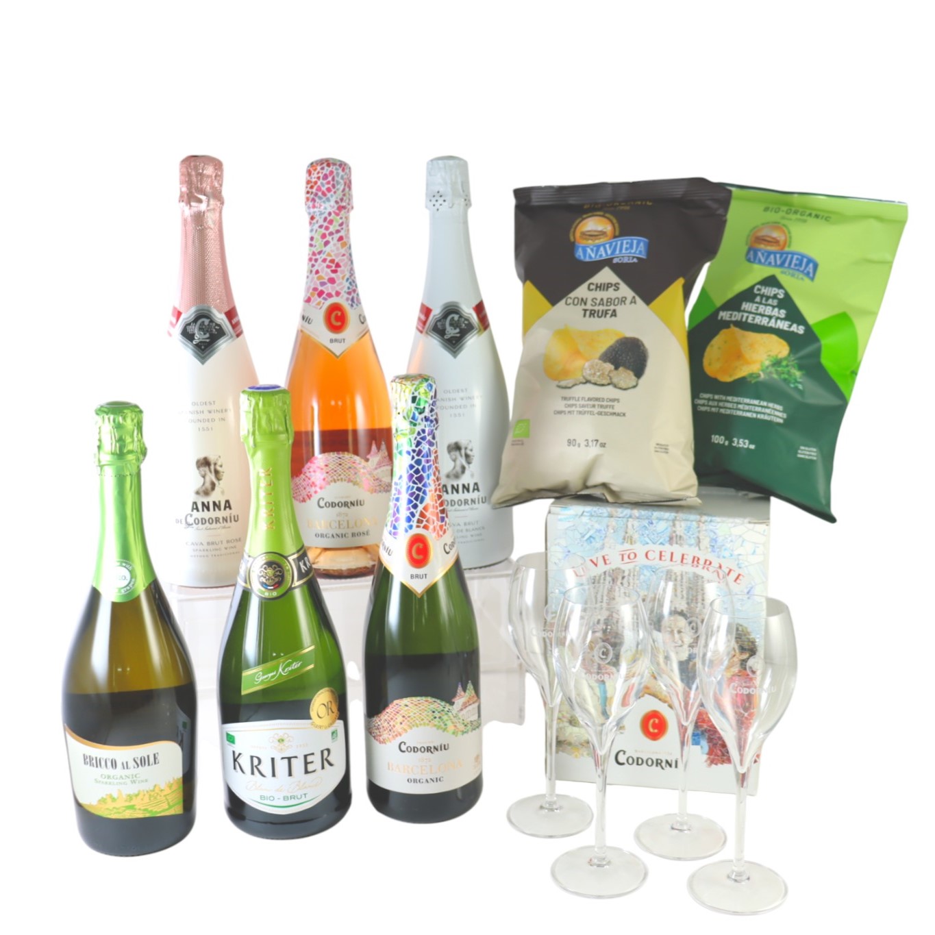 総額12,500円相当!新年のお祝いは、自然派スパークリングで華やかに乾杯!フランス・イタリア・スペインのスパークリングワイン6本を飲み比べできるお得なセットです。『コドルニウ』のオリジナルグラス4脚付き。人気のオーガニックポテトチップスと一緒にお楽しみください。