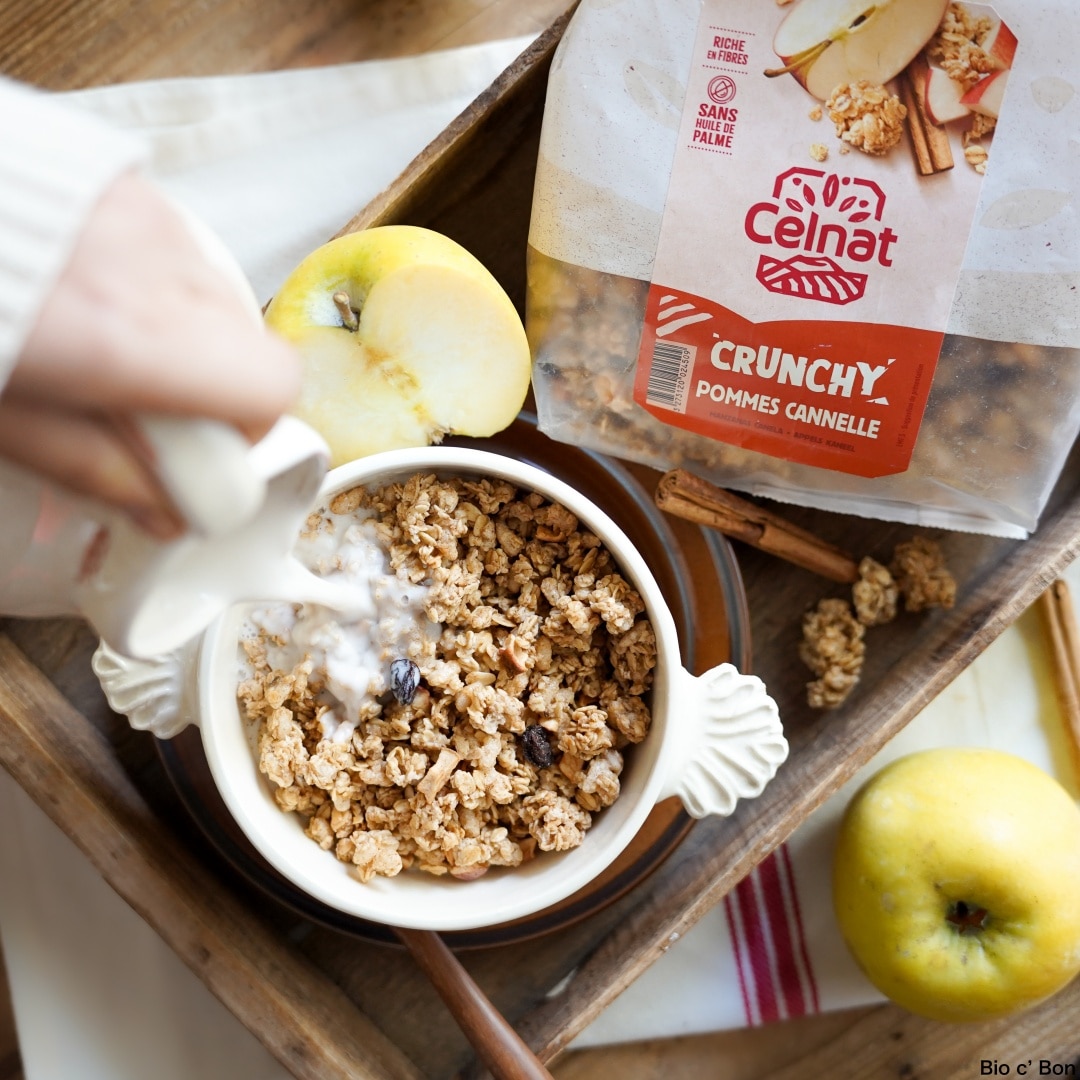 オートミールとライスパフに、りんごやレーズンを加えたシナモンフレーバーのシリアル。食べ応えがあり、ザクザクとした食感も魅力です。ヨーグルトをかけて、しっかり朝食をとりたい方にもおすすめ。