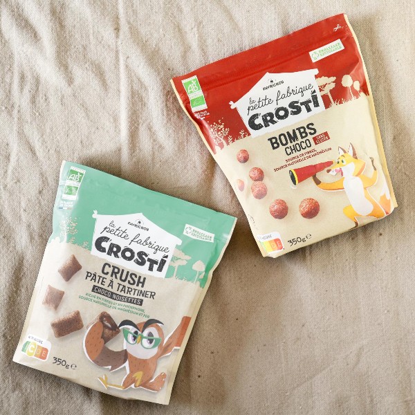 有機原料を使用した、JAS認証取得のシリアル。朝食にはもちろん、おやつとしても手軽にお召し上がりいただけます。チョコフォンダンシリアル(写真左)は、ヘーゼルナッツクリーム入りで、食感のアクセントもお楽しみいただけます。