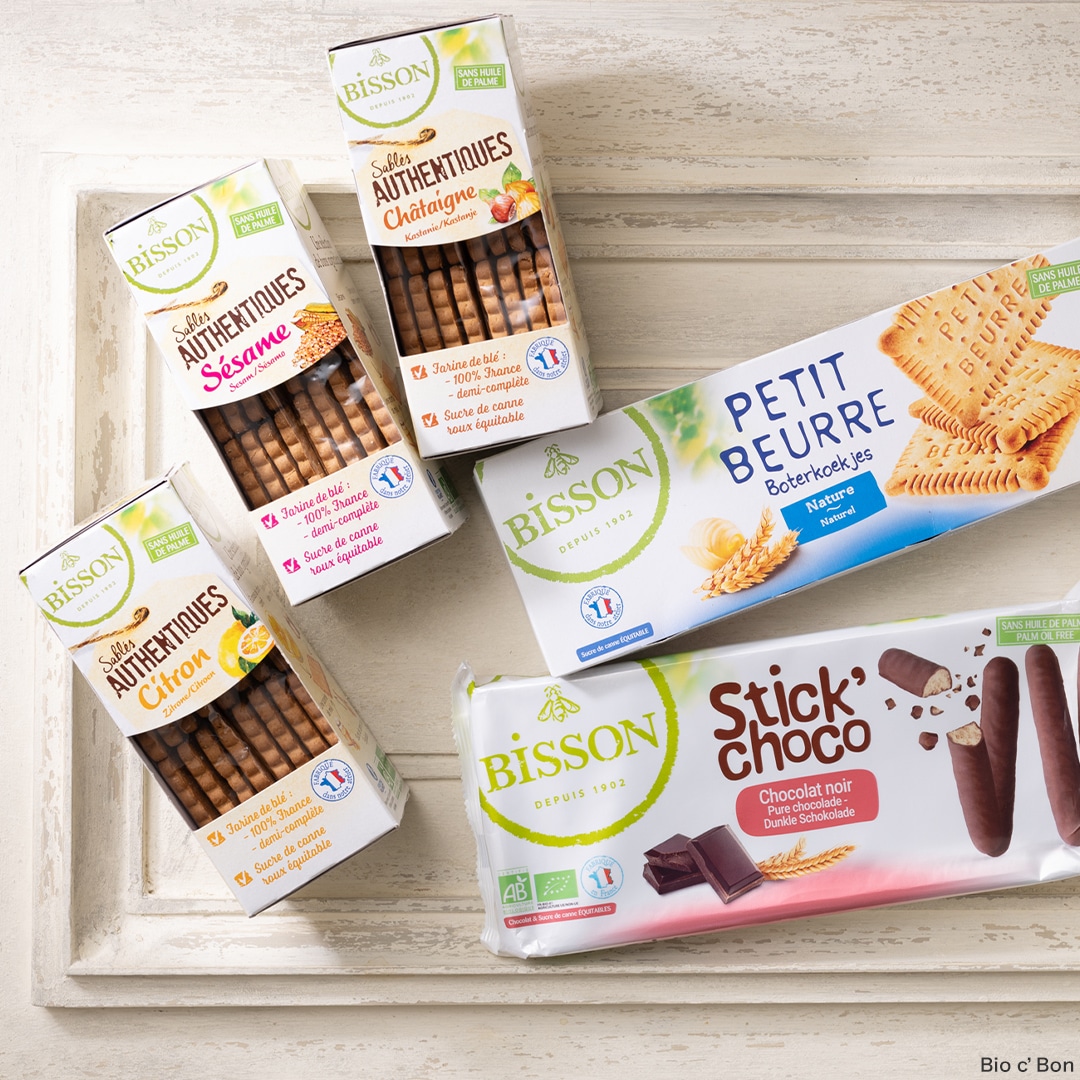 ビソンは、フランス産小麦粉を使用し、すべての原材料にこだわった、伝統的な製法を大切にするブランド。フランスらしい素朴でやさしい味わいを、ぜひお楽しみください。