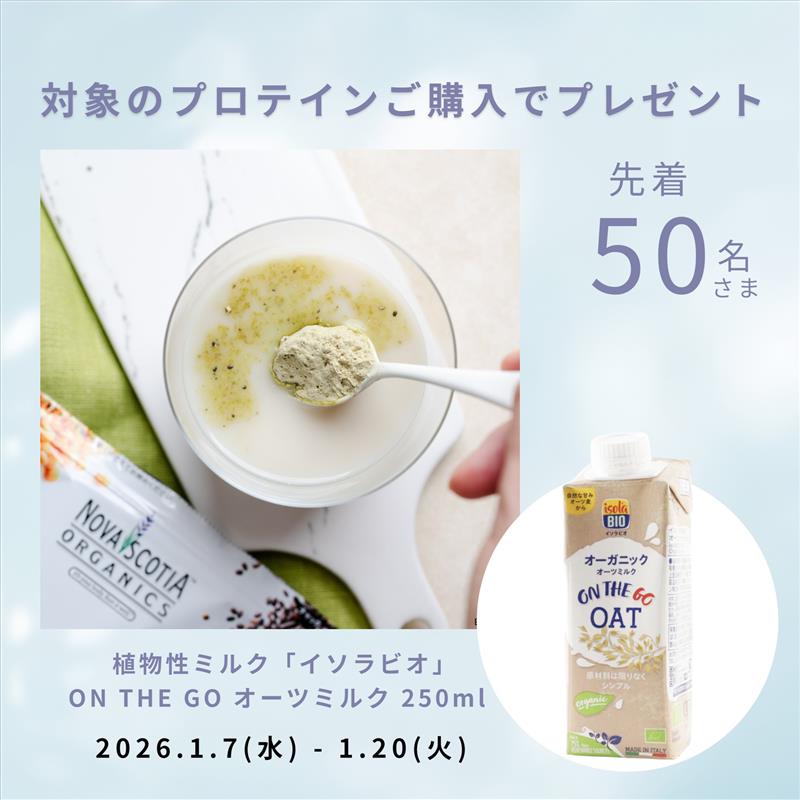 今すぐ毎日の食生活にプロテインを取り入れよう!オンラインストアで対象プロテインの購入を購入すると、イソラビオ オーガニック植物性ミルクプレゼント実施中。→詳しくはこちら