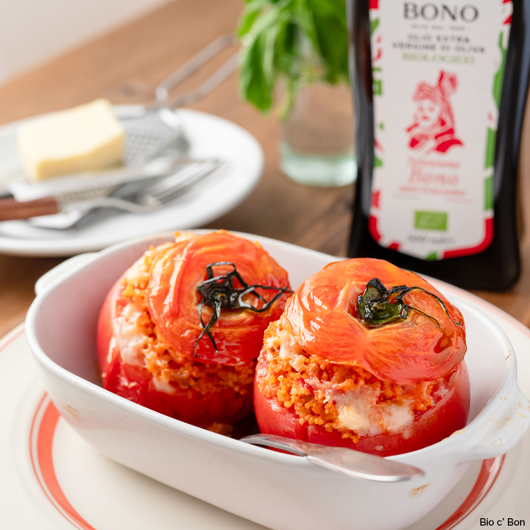 フランスの定番「トマトファルシ」を、ミートソースを使って簡単に!クスクスを入れてお腹も満足な一品です。冷やしてサラダ風にしても美味しいですよ。