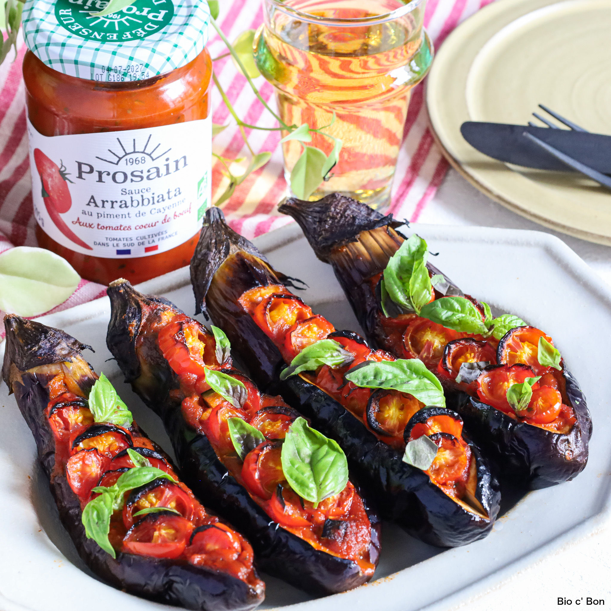 旬の瑞々しくジューシーなナスに、トマトソースをたっぷり詰め込みグリルで焼くだけ。ナスがとろけるように柔らかく、トマトソースの旨みがしっかり染み込んだ、食べ応えのある一皿です。