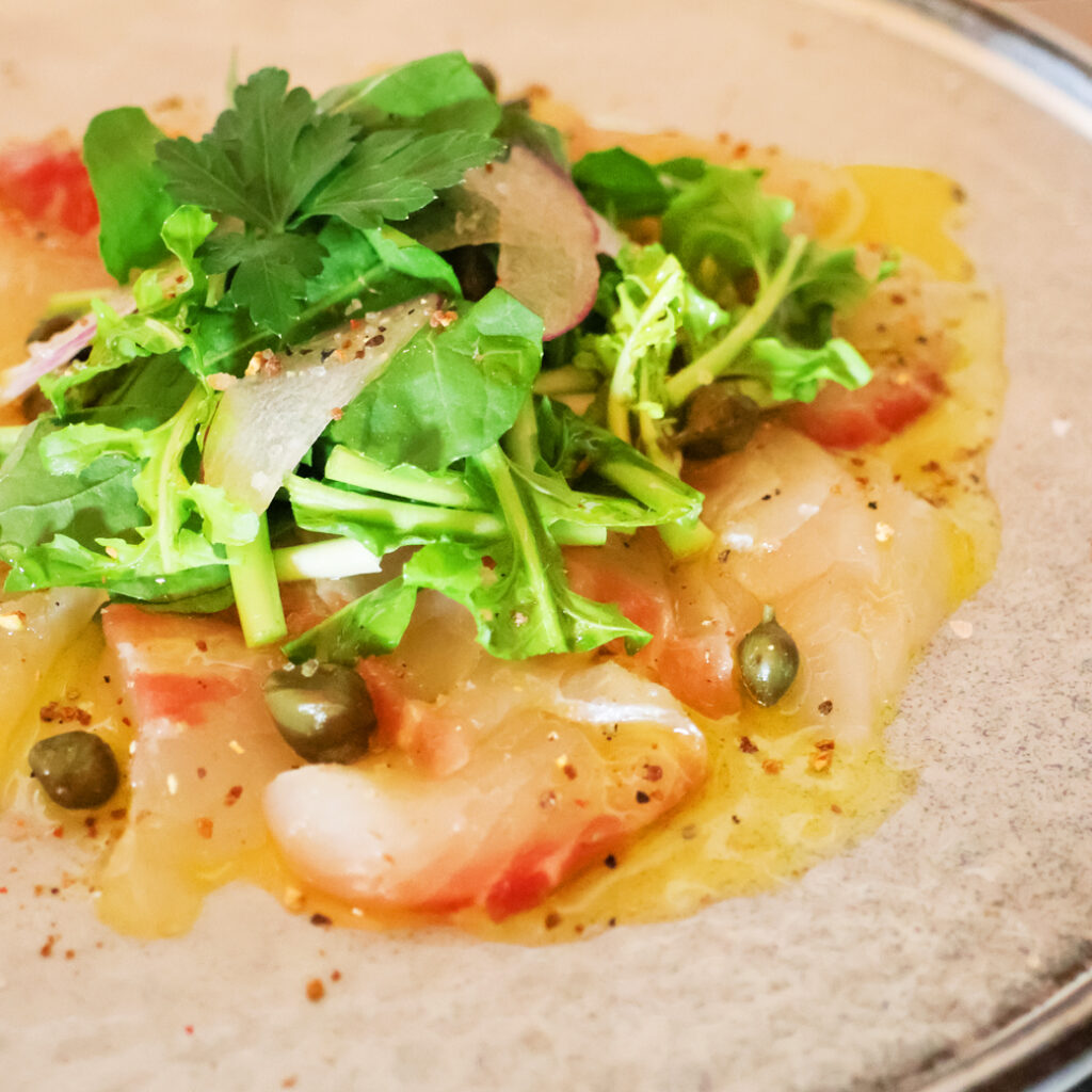 ルッコラたっぷり レモンペッパーカルパッチョ