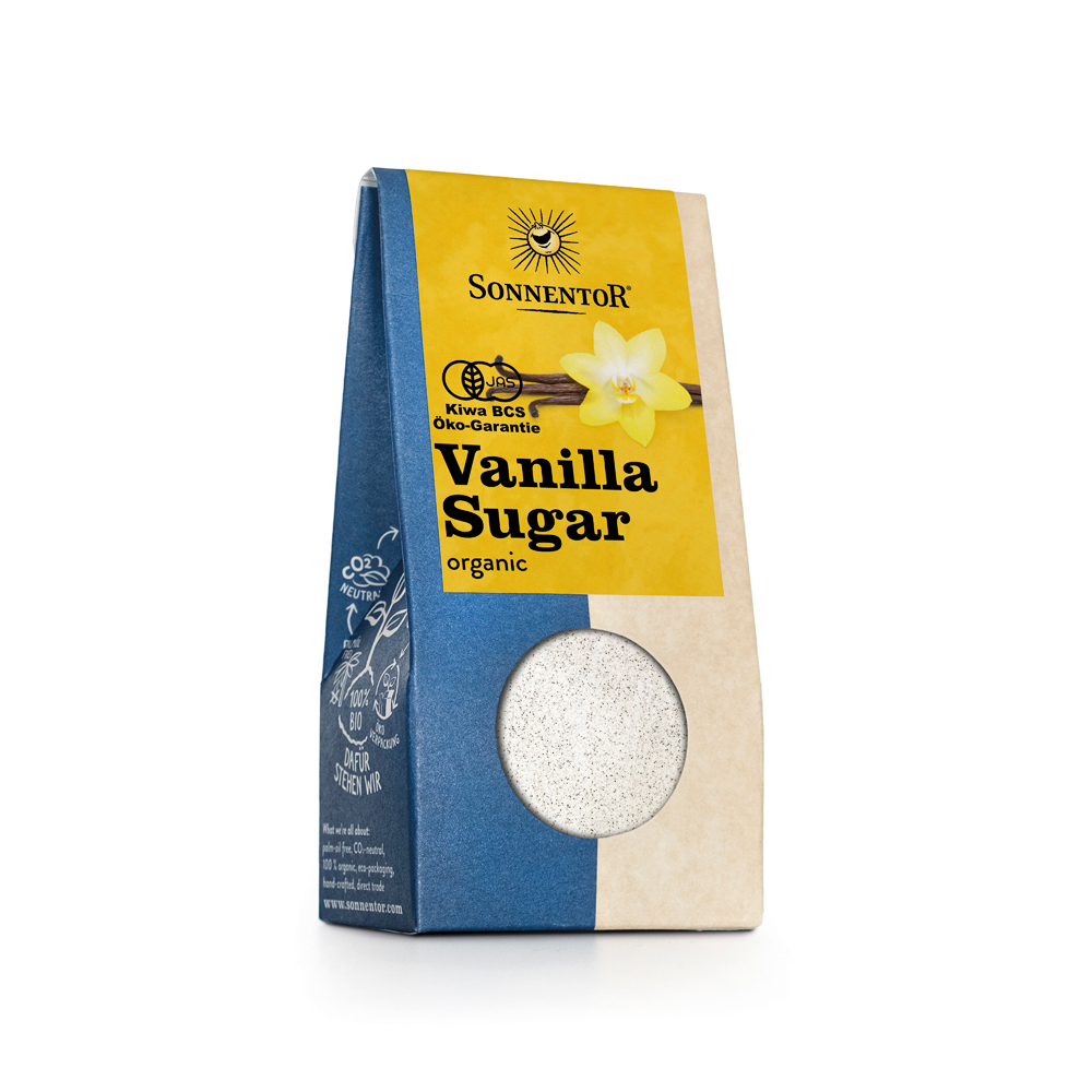 バニラシュガー- 有機バニラビーンズと有機甜菜糖をブレンドした上品な甘さが特徴。クリーム、アイス、ミルクティーなど、至福の時間を満喫したいときにもおすすめです。